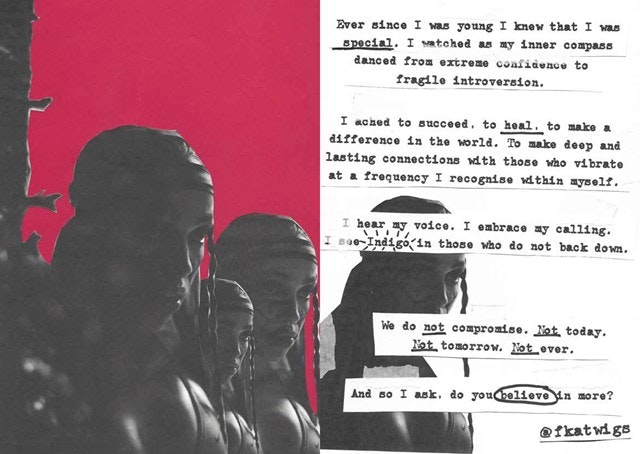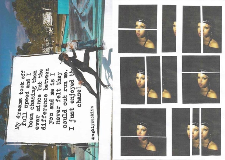 twigs and I made a zine for all the indigos to accompany the NikeWomen's campaign she directed and featured in. The zine exhibits handmade collage, photography and personal notes and includes all the dancers, athletes, artists and musicians involved in the campaign. The zine was launched at Nike Town, London.