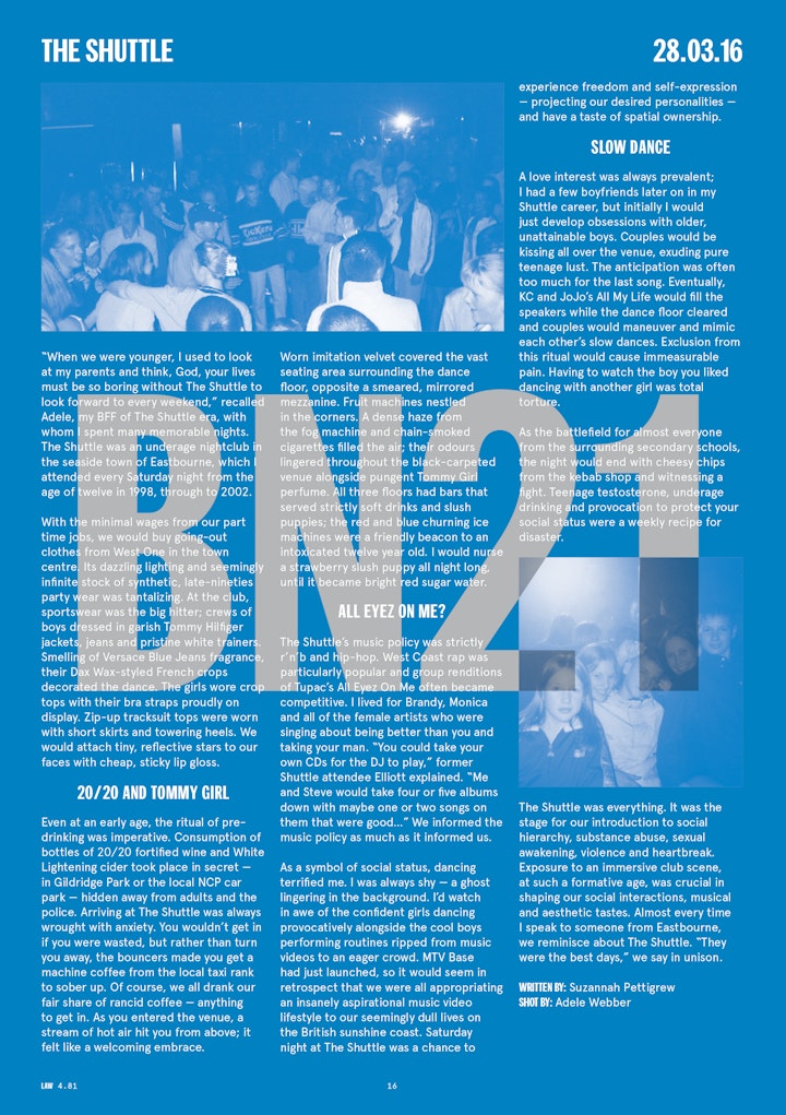 I wrote an article for LAW Magazine Issue 8 / May 2016 about my teenage nightclub home 'The Shuttle'. Images courtesy of Adele Howes. Thanks to Joseph Bond.