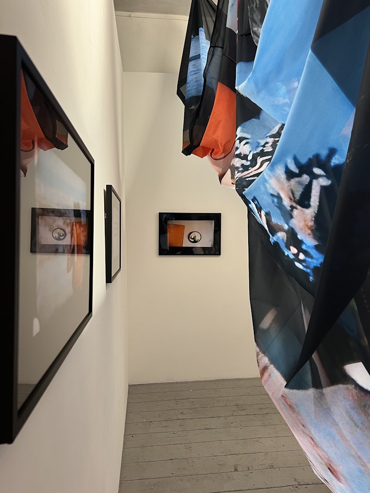 The End (For Now) explores not only a personal passing of time, but a journey through technology and mediums of storytelling. The works expand a film archive that has developed over decades from a revisited collection of individual and shared intimate family memories. The photographic stills are augmented through c-type prints, digitally printed fabric, audio soundscape and Generative Poetry Intervention. The double media filter enhances the 8mm and VHS grain captured in the photographs; the black borders, which give no sense of spatial placement, push the images further into the past. While abstracted memories surface as captured stills in print show family life with intimate recollection.